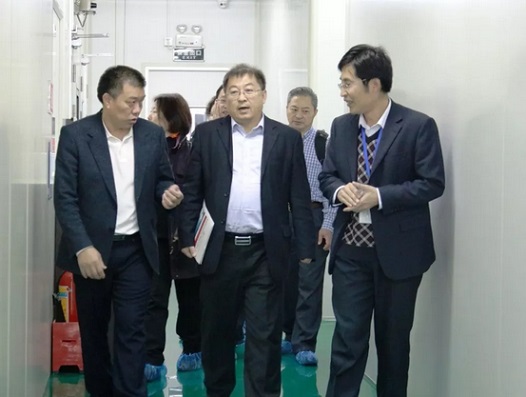 公司总经理李锡光会同生产总监孔令沂博士一道,给来访的领导和专家介绍公司目前的设备和生产情况。